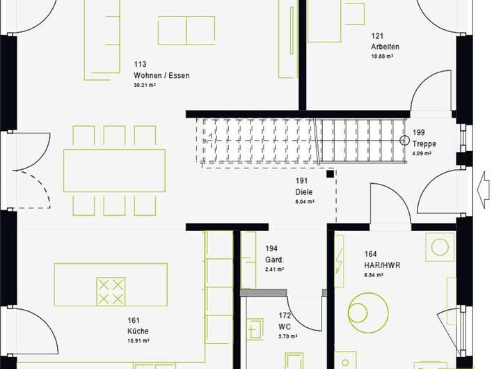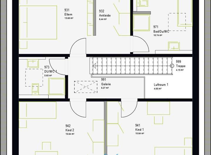 Das Haus besticht durch seine selbstbewusste Ausstrahlung und ist ideal für Familien mit dem Wunsch nach viel Freiraum. Doch vor allem durch seine individuellen Ausbaumöglichkeiten gewinnt das Haus an schmeichelnder Größe. Hier können Sie Ihre eigenen Ideen verwirklichen und Ihr Traumhaus gestalten.