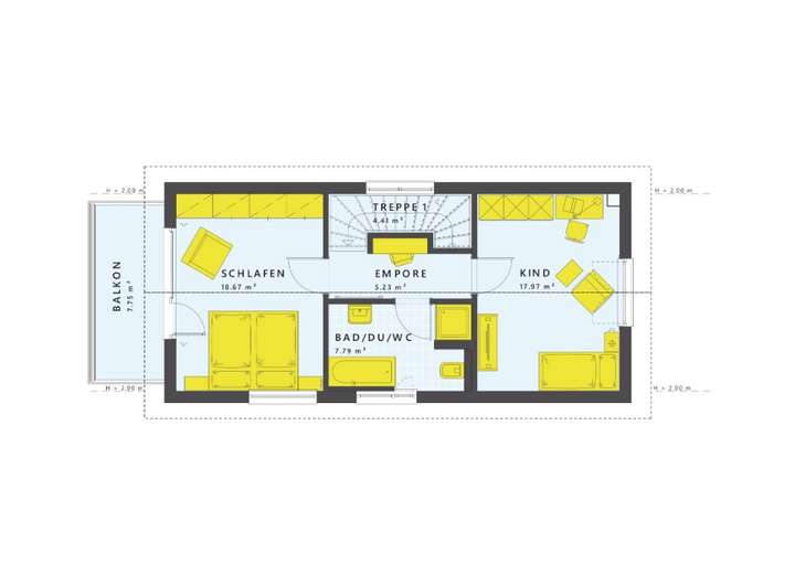 Dieses projektiert gestaltete Fertighaus Solution 107 von Living Haus in Erkelenz bietet dir ein Zuhause, das sich ganz nach deinen Wünschen und Vorstellungen richtet. Mit einer Wohnfläche von 107m², verteilt auf zwei Etagen, und einem klassischen Satteldach mit 25 Grad Neigung, erlebst du hier architektonische Eleganz gepaart mit praktischer Raumaufteilung. Die vier Zimmer sind lichtdurchflutet und bieten Platz für eine kleine Familie. Zwei Schlafzimmer und ein Badezimmer sorgen für komfortables Wohnen, während eine großzügige Terrasse zum Verweilen im Freien einlädt. Ein Balkon verleiht dem Haus zusätzlichen Charme und erweitert deinen Lebensraum ins Freie.