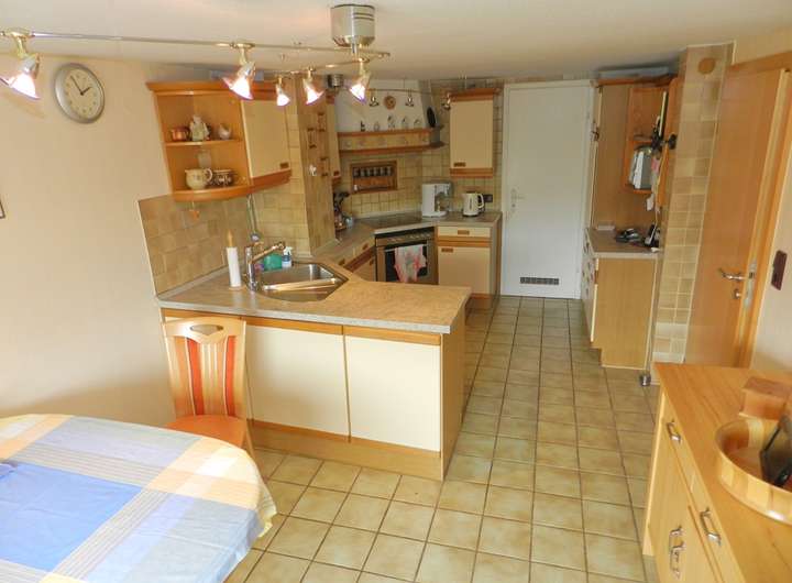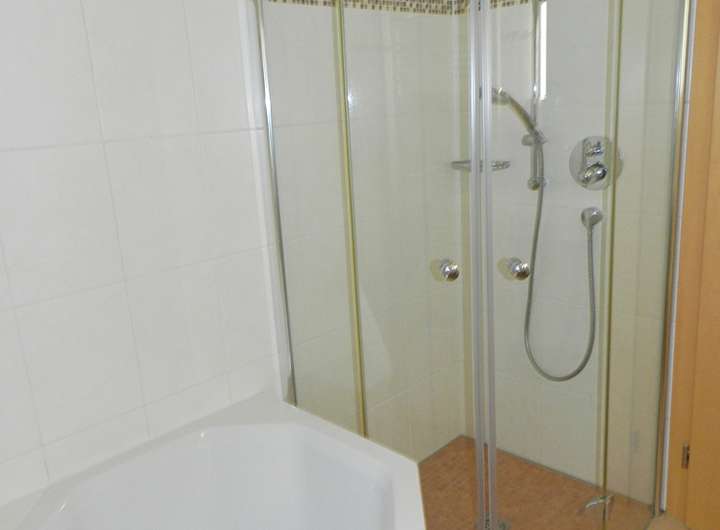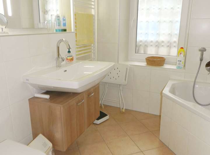 Die Bodenbeläge wurden überwiegend mit Stäbchenparkett, Korkböden und Fliesen ausgestaltet und einige Türen erneuert. Das Bad im Erdgeschoss mit Eckbadewanne und Dusche ist etwa 15 Jahre alt.