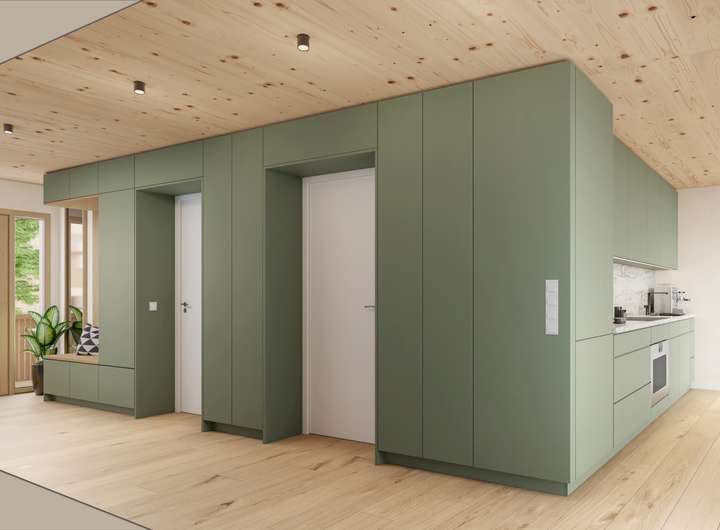 * Eine dezentrale Lüftungsanlage sorgt in allen Räumen der Wohnung für kontinuierlichen, frischen Luftaustausch und ist mit Wärmerückgewinnung ausgestattet, um Energie effizient zu nutzen und ein angenehmes Raumklima zu gewährleisten.