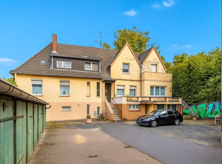 Das Ensemble besteht aus einem Vorderhaus (Baujahr 1912) mit insgesamt acht Einheiten auf rund 588 m² Wohn- und Gewerbefläche, einem Hinterhaus (Baujahr 1955) mit ca. 220 m² Nutzfläche sowie einem separaten Baugrundstück, für das der planungsrechtliche Vorbescheid der Stadt Leverkusen vorliegt. Dieser bestätigt die Zulässigkeit eines Mehrfamilienhauses gemäß § 34 BauGB als Lückenschluss innerhalb der bestehenden Häuserzeile.