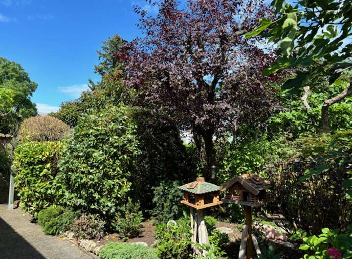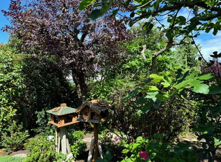 Alles schön angelegt und bewachsen u.a. mit einem Feigenbaum und weiteren Bäumen und Sträuchern.