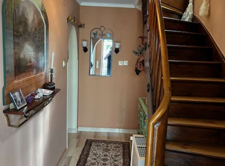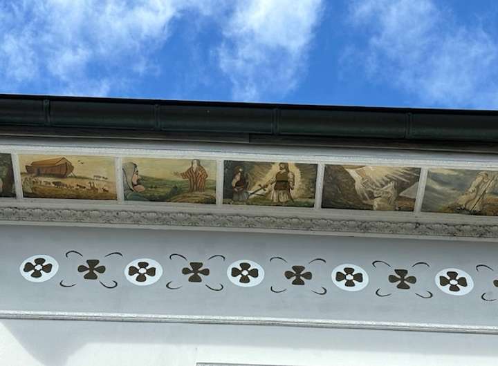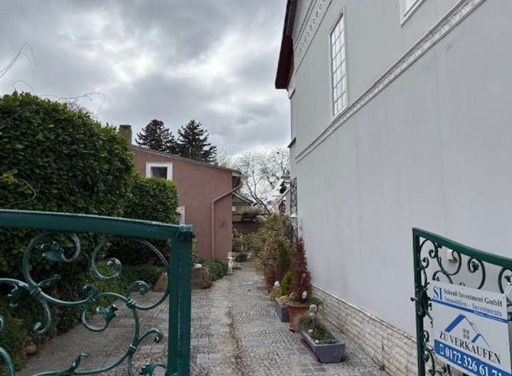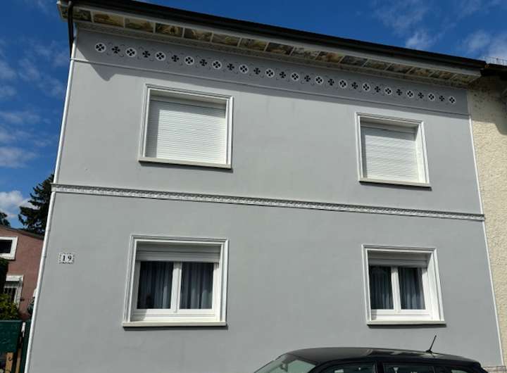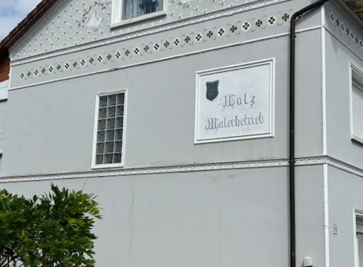 Das Einfamilienhaus ist ein gepflegter Altbau. Die Fassade wurde erst vor einigen Jahren erneuert und sehr schön gestaltet. Mit aufwendigen Malereien unter dem Dach.