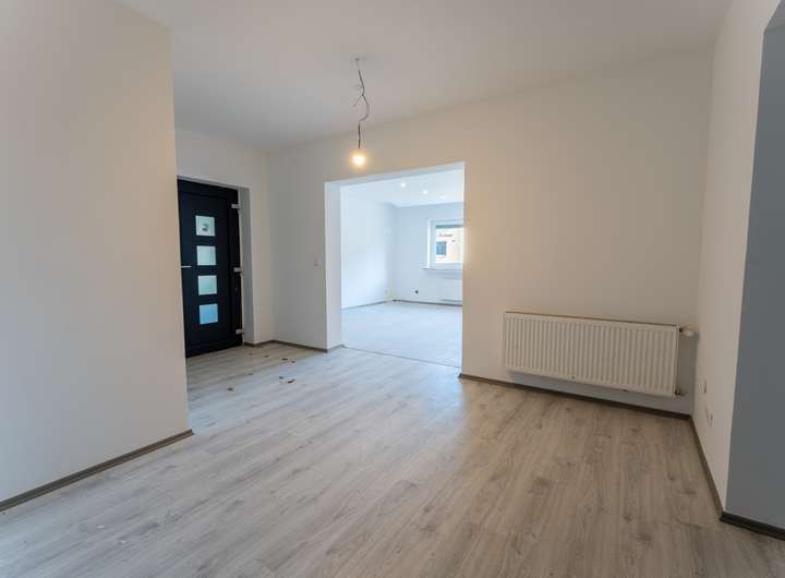 Die Wohnung im Untergeschoss verfügt über einen eigenen Hauseingang. Hier befinden sich ein Flur, ein großzügiges Wohnzimmer, eine Küche, ein Schlafzimmer, ein modernes Badezimmer und ein Gäste-WC. Dieser Bereich wurde größtenteils renoviert.