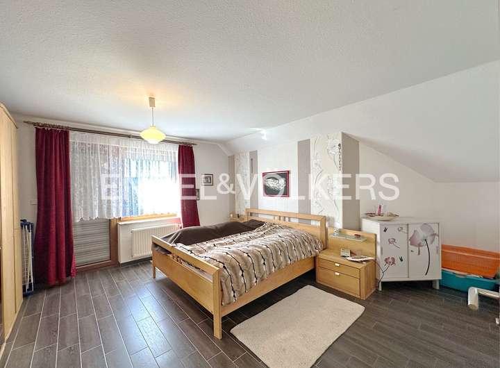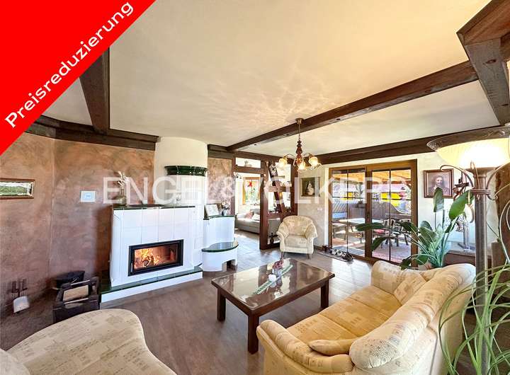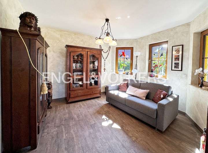 Die Immobilie verfügt über sieben Zimmer, darunter zwei frisch renovierte Bäder, die sowohl Privatsphäre als auch modernen Komfort bieten. Die großzügigen Fensterfronten durchfluten jeden Raum mit natürlichem Licht und schaffen eine helle, freundliche Atmosphäre. Das Haus ist voll unterkellert und bietet damit nicht nur zusätzlichen Stauraum, sondern mit zwei Büroräumen auch praktische Arbeitsflächen. Mehrere Stellplätze auf dem Grundstück bieten ausreichend Parkmöglichkeiten. Die Heizungsanlage, eine moderne Gasbrennwerttechnik, wurde 2020 erneuert und sorgt für ein effizientes und angenehmes Raumklima.