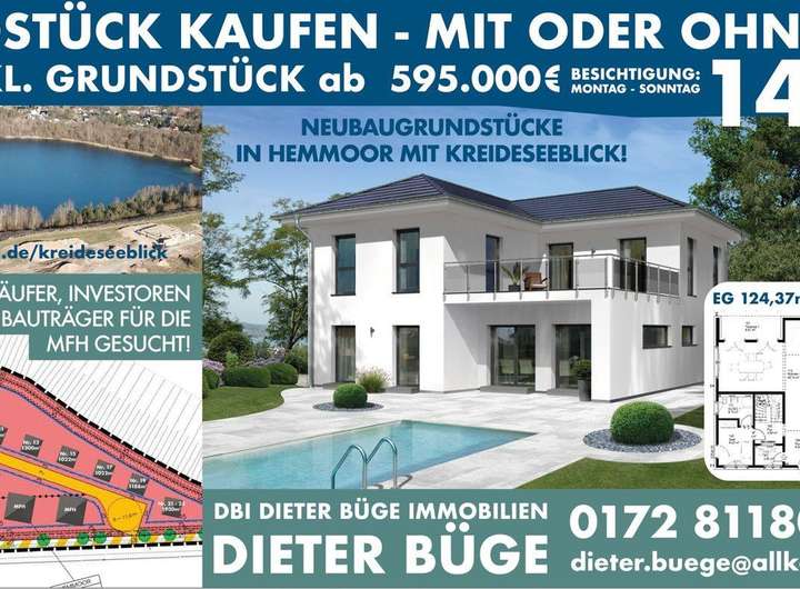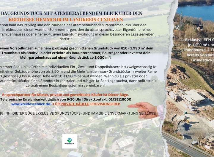 1a-Grundstück, Seeblick, LK Cuxhaven, 21745 Hemmoor! Mit Haus inkl. Grund: ab 395.000! 01728118000