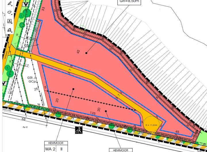 Grundstücke für Ein- und Mehrfamilienhäuser (WA2, WA3) ab 1.000 m². Gíebelhöhe 10 m (WA 2) und 11,50 m (WA 3) mit 2- bzw. 3 Vollgeschossen. GFZ: 0,4.