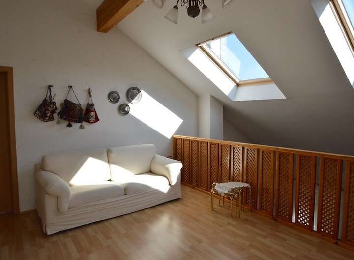 Im Dachgeschoss fällt Ihnen sofort die wunderbare Galerie zum Wohnzimmer auf. Auf gleicher Ebene finden Sie ebenfalls einen geräumigen Flur, das sehr großzügige Schlafzimmer mit einem tollen Weitblick in die Weinberge und das neu zu gestaltende Badezimmer. Dieses zusätzliche Bad im Rohbau, bietet Ihnen die Möglichkeit, alles ganz nach Ihren eigenen Vorstellungen fertigzustellen.
