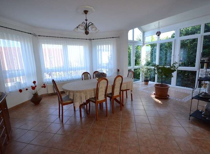 Über die schöne Holztreppe gelangen Sie in das HERZSTÜCK des Hauses - den großen Wohn- und Essbereich mit Erker, der mit großen Fenstern den Raum in Tageslicht badet und eine helle und einladende Atmosphäre schafft. Auch der angrenzende, wintergartenähnliche, Bereich eignet sich perfekt für gesellige Runden mit Familie und Freunden und für ein entspanntes Beisammensein.