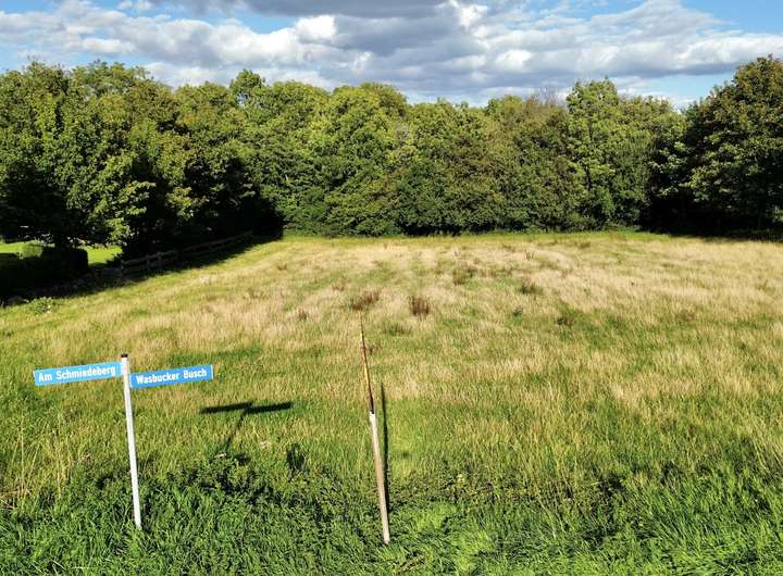 Das Grundstück befindet sich am Ortseingang umrahmt von Feldern und Wiesen sowie einem kleinen Wäldchen.