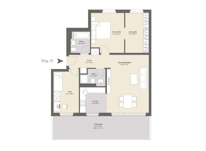 • Rund 27 m² großer Wohn- / Essbereich