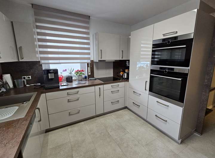 Die Eigentümer führten 2018 eine Modernisierung und Erweiterung der EG-Wohnung durch. Die heutige ca. 104 m² große Wohnung (inkl. ca. 10 m² Terrassenfläche) besticht durch ihren modernisierten, zeitgemäßen Standard und den schönen Garten, der sich an den Terrassenbereich anschließt. Die Gesamtwohnfläche der Immobilie beträgt ca. 302 m².