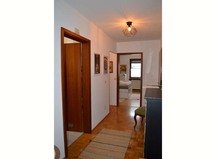 Die Maisonette-Wohnung im OG links/DG verfügt im OG über eine geräumige Diele, ein Esszimmer mit Balkonzugang, eine Küche, ein Gäste-WC und einen Abstellraum mit Waschmaschinenanschluss. Im DG begeistern die offene Diele mit angrenzendem Wohnzimmer und schöner Dachterrasse. Zusätzlich stehen drei Schlafzimmer, eine Ankleide und ein Badezimmer mit Dusche und Eckbadewanne bereit. Hervorzuheben wäre außerdem der Kehlspeicher oberhalb des Wohnzimmers, der zusätzlich Platz bietet. Die Bodenbeläge bestehen aus Parkett, Laminat, PVC und Fliesen.