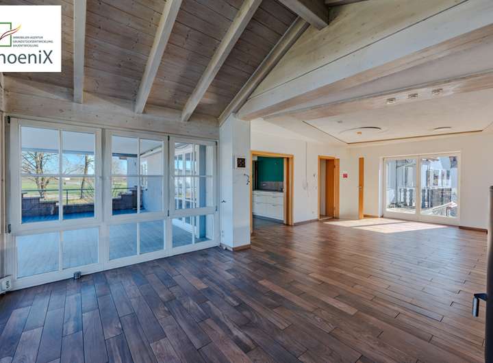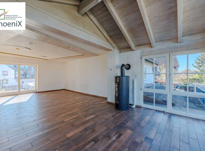 Im 1. Obergeschoss und Dachgeschoss, befindet sich eine wunderschöne Wohnung mit viel Platz und einer traumhaften Aussicht.