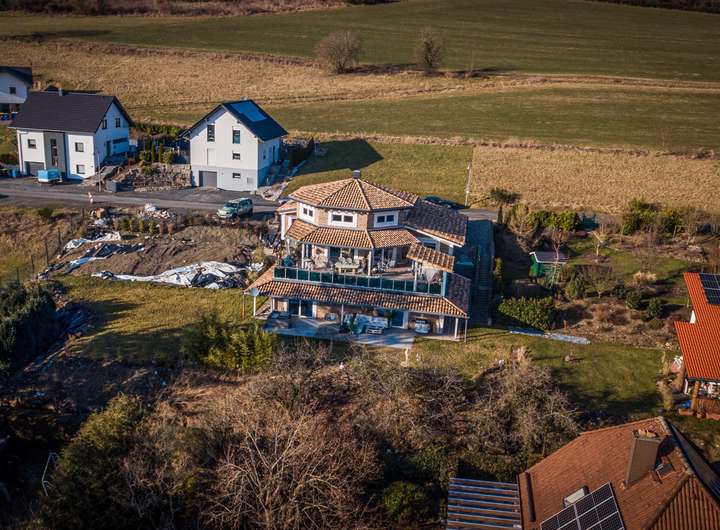 Dieses exklusive Einfamilienhaus, erbaut im Jahr 2019, vereint modernes Wohnen mit außergewöhnlichem Design und bietet einen atemberaubenden Blick auf die Landschaft. Die großzügige Wohnfläche von insgesamt ca. 333 m² ist hochwertig ausgestattet und besticht durch eine offene Raumgestaltung mit lichtdurchfluteten Bereichen.