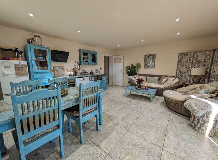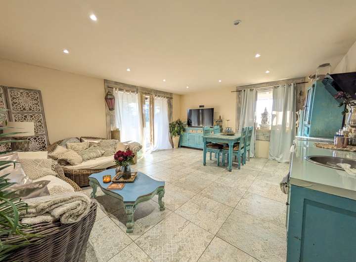 Eine der Wohnungen (ca. 85 m²) ist direkt vom Haus aus zugänglich und kann problemlos mit dem Hauptwohnbereich verbunden werden. Die zweite Einliegerwohnung (ca. 65 m²) verfügt über einen separaten Eingang und eignet sich ideal zur Vermietung oder als eigenständiger Wohnbereich.
