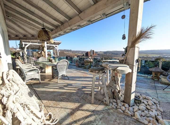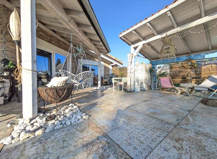 Der Außenbereich des Hauses ist ein absolutes Highlight: Die großzügige Terrasse ist stilvoll gestaltet und lädt zum Entspannen ein. Zusätzlich gehört ein separates Baugrundstück mit ca. 800 m² zum Angebot, das sich ideal für eine weitere Bebauung oder als Investition eignet.
