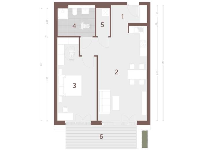 Diese großzügige 2-Zimmer-Wohnung mit 75,32 m² zeigt sich mit einem durchdachten Grundriss mit offenem Wohn-/Kochbereich für modernes, zeitgemäßes Wohnen und eignet sich ideal für Singles oder Paare. Auf Wunsch kann auch eine maßgeschneiderte Einbauküche mit hochwertigen Komponenten erworben werden.