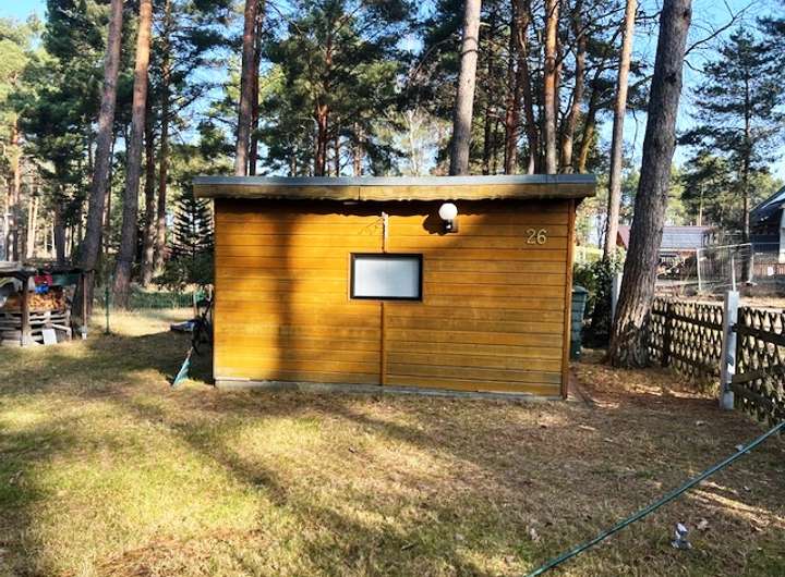 Das idyllische Waldgrundstück ist bebaut mit einem 24 m² großem Wochenendhaus im Bungalowstil, errichtet etwa im Jahre 1970, und 2 geräumigen Schuppen. Der Bungalow zeichnet sich durch seine durchdachte Raumaufteilung mit dem offenen gestalteten Wohnbereich und seine verhältnismäßig großen Fenster aus. Insgesamt befindet sich dieser Bungalow in einem modernen und liebevoll gepflegten Zustand. Der perfekte Rückzugsort vom Alltagsstress.