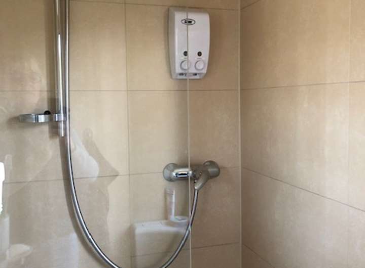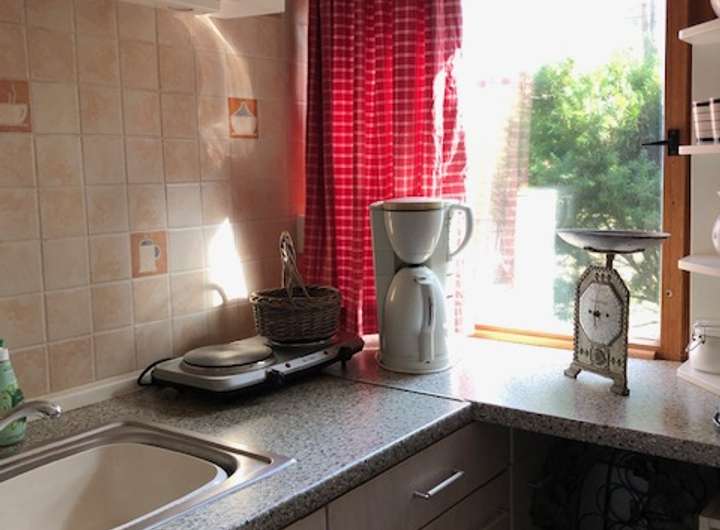 - kleine Einbauküche mit Geschirrspüler, Durchlauferhitzer und Wasserfilter