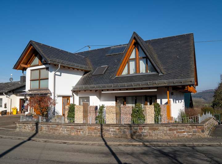 Dieses massiv gebaute und hochwertig ausgestattete Familienzuhause bietet viel Platz und Komfort. Die Hauptwohnung erstreckt sich über das Erdgeschoss sowie das gartenseitig offene Untergeschoss und bietet eine großzügige Raumaufteilung. Eine Besonderheit hier: die großzügige im Jahr 1993 aufgestockte Einliegerwohnung im Dachgeschoss, die aktuell vermietet ist. Große Fenster- und eine verglaste Giebelfläche erhöhen den Wohnkomfort und lassen auf eine hochwertige und durchdachte Ausstattung schließen. Durch diese Miteinnahmen lässt sich das Haus teilweise mitfinanzieren, was es auch als Kapitalanlage oder junge Familien besonders interessant macht. Die Außenanlagen der Immobilie zeichnen sich durch ein kompaktes und pflegeleichtes Grundstück aus, das wenig Aufwand erfordert und dennoch ein angenehmes Ambiente bietet. Hier findet jeder seinen Lieblingsplatz im Freien – versprochen! Die Lage des Hauses ist besonders attraktiv, ländlich gelegen aber dennoch unweit der Bäderstraße. Dadurch ist eine hervorragende Anbindung nach Wiesbaden und ins gesamte Rhein-Main-Gebiet gegeben. Dies ist besonders für Berufstätige interessant, die eine ruhige Wohnlage mit gleichzeitig guter Erreichbarkeit der umliegenden Städte bevorzugen.