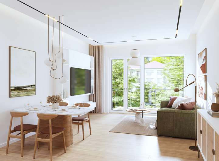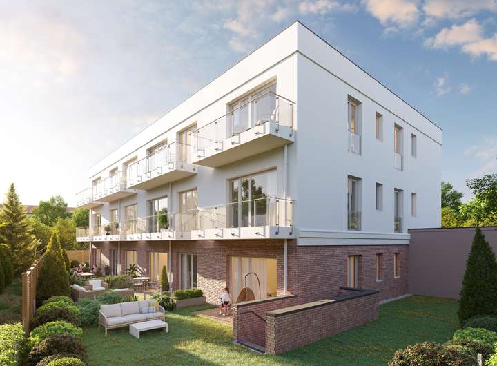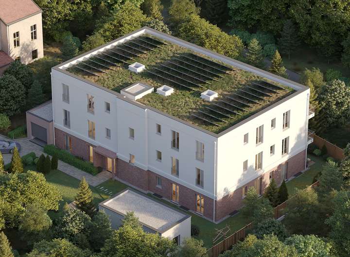 In der idyllischen Gemeinde Hoppegarten unweit der Galopprennbahn entsteht mit der Rennbahnallee 103 ein exklusives Wohnensemble mit 12 hochwertigen Eigentumswohnungen. Das moderne dreigeschossige Mehrfamilienhaus beeindruckt durch seine durchdachte Architektur und die harmonische Integration in die grüne Umgebung. Besonders angenehm ist die Lage in zweiter Reihe, die für zusätzliche Ruhe und Privatsphäre sorgt – weit weg vom Straßenlärm, aber dennoch perfekt angebunden. Die großzügigen Verglasungen und die Südwest-Ausrichtung garantieren lichtdurchflutete Räume und ein angenehmes Wohnambiente. Das nachhaltige Gebäude wird nach dem zukunftssicheren KfW-55 EE Standard errichtet und verfügt über eine eigene Photovoltaikanlage. Diese Kombination aus hochwertiger Immobilie und niedrigen Energiekosten macht das Objekt ideal für anspruchsvolle Eigennutzer oder für Kapitalanleger, die auf Wertstabilität und Nachhaltigkeit setzen.