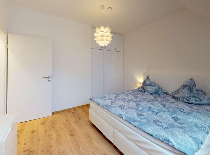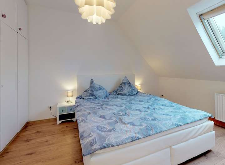 2025 Renovierung der Wohnung DG links: neues Laminat, neues Dachfenster und neue Duschwand im Bad, Wohnung geweißt, neue Schlafcouch
