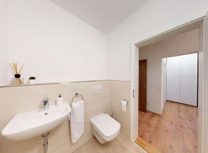 Die Wohnung im Erdgeschoss verfügt zusätzlich zu den Heizkörpern über eine Fußbodenheizung.