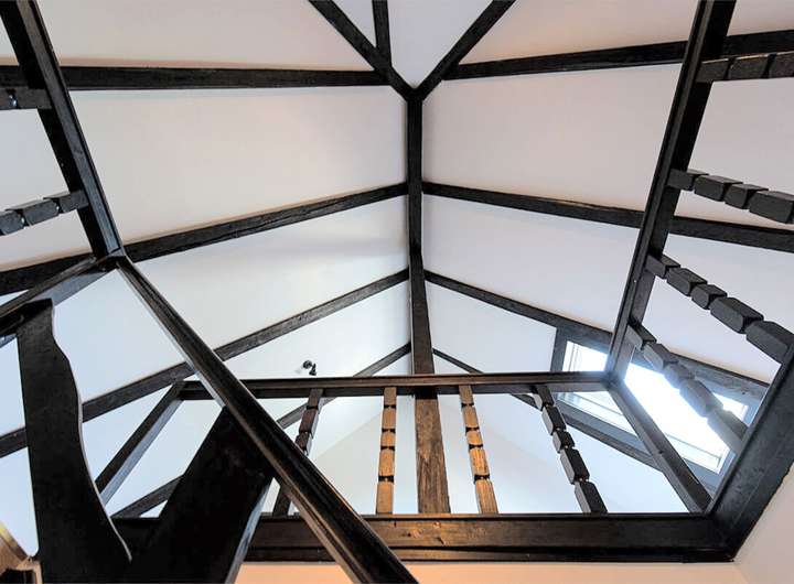 2021 Wiederinbetriebnahme der historischen Turmuhr. Ausstattung mit elektrischem Motor und Beleuchtung.