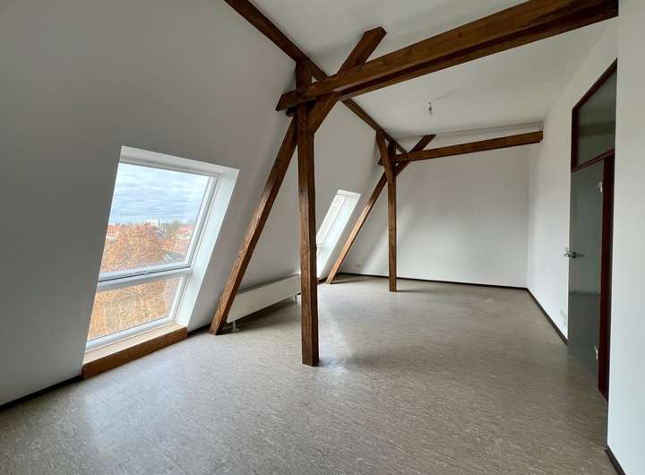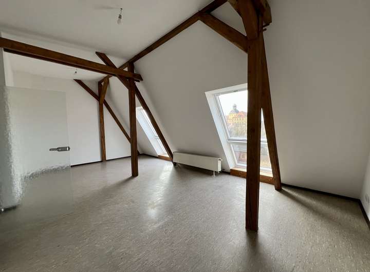 In der Wohnung erwarten Sie sichtbare Holzbalken, große Dachfenster, viel Tageslicht & eine einladende Atmosphäre.