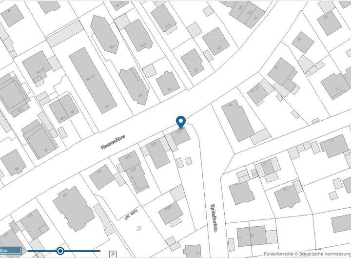 Das große Eckgrundstück liegt an der Haunwöhrer Str. 101, Ecke Spitalhofstraße. Es hat eine Fläche von 718 m².
