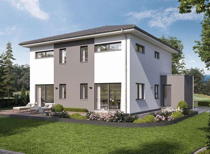 Entdecken Sie die Stadtvilla, ein echtes Raumwunder, das auf ca. 210,10 m² all Ihre Wohnträume wahr werden lässt. Diese Villa beeindruckt mit einer cleveren Raumgestaltung, angeführt von einer zentral integrierten Treppe, die nahtlos in einen weitläufigen Wohn-, Ess- und Küchenbereich übergeht. Hier können Sie Ihre Vorstellungen von einem perfekten Zuhause spielend leicht umsetzen. Im Obergeschoss erwartet Sie zusätzliche Freiheit für individuelle Gestaltung: Ein Elternzimmer mit begehbarer Ankleide und ein großzügiges Wohlfühlbad versprechen exklusiven Wohnkomfort. Die Stadtvilla - wo Raum auf Eleganz trifft und Wohnträume Realität werden.