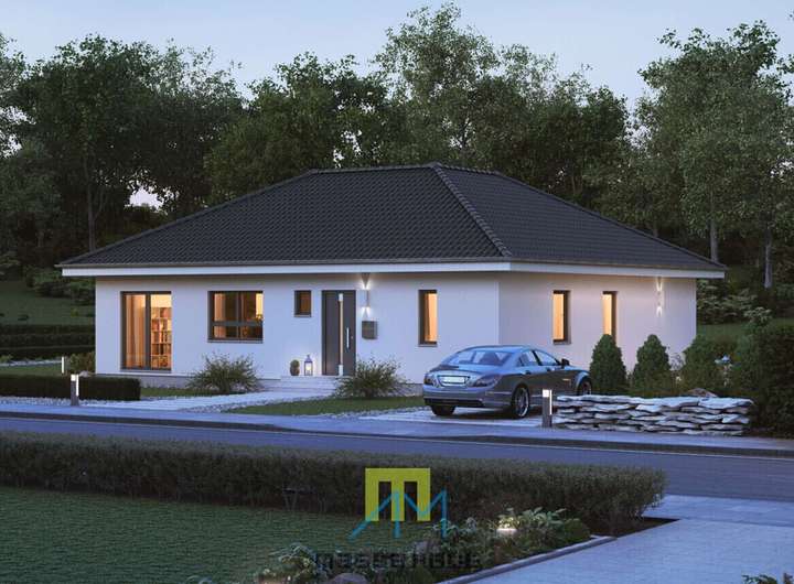Ihr neues Eigenheim! Ein Bungalow, der Freiluftliebhabern und Komfortsuchenden gleichermaßen gerecht wird. Auf ca. 138 m² Nettogrundfläche entfaltet sich ein Wohntraum, der Individualität und Wohlbefinden in den Vordergrund stellt. Das besondere an diesem attraktiven Walmdach-Bungalow ist seine rechtwinklig versetzte Konzeption, die sowohl einen überdachten Sitzplatz als auch eine angrenzende Freiterrasse bietet - ideal für entspannte Stunden im Freien, egal ob bei Sonnenschein oder warmem Regen. Im Inneren des Hauses erwartet Sie ein offen gestalteter Wohn-, Ess- und Küchenbereich, der als Herzstück des Hauses dient. Zusätzlich bietet der Bungalow ausreichend Platz für ein Duschbad, ein großes Badezimmer sowie zwei großzügige Kinder- und ein Elternzimmer. Der ComfortStyle - wo das Leben drinnen und draußen gleichermaßen genossen wird.