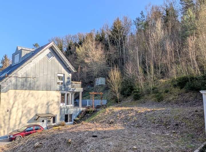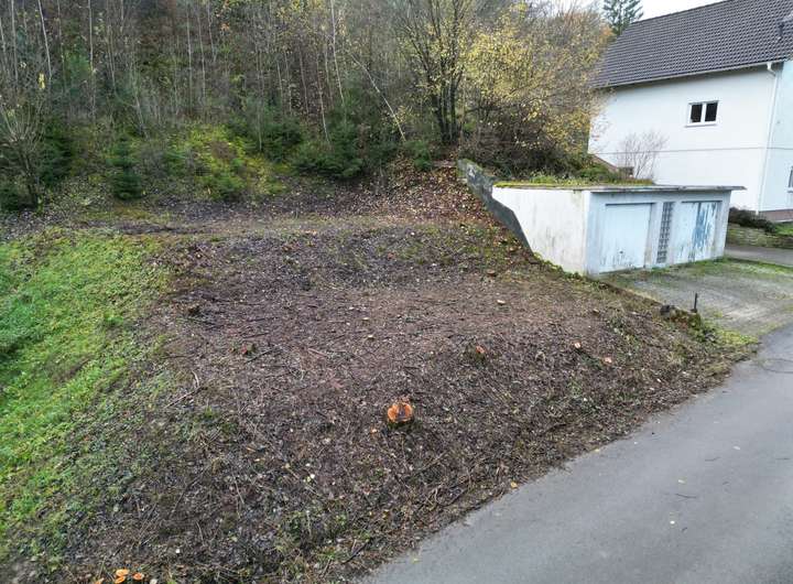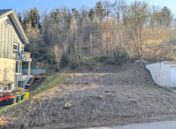 Durch die Hanglage ist ein mit ebenerdiger (altersgerechter) Einliegerwohnung unterkellertes Haus mit Erdgeschoss und ausgebautem Dachgeschoss denkbar. Auch Garagen könnten ebenerdig realisiert werden.