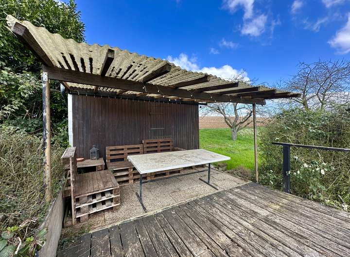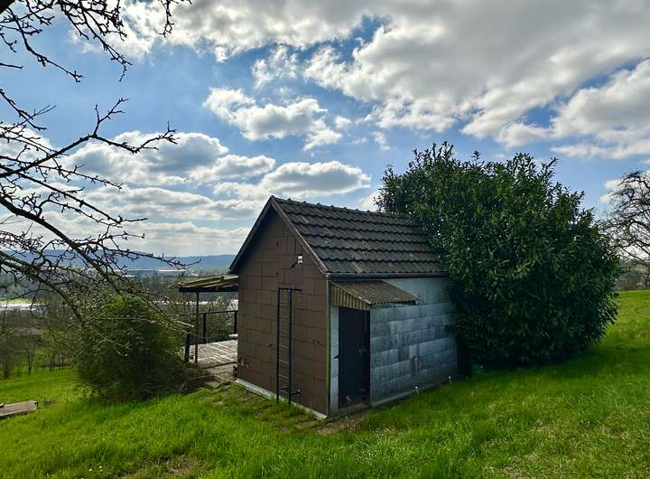 Auf dem Grundstück befinden sich ein prächtiger Kirschbaum, mehrere Apfelbäume und ein Zwetschgenbaum, die nicht nur zur Gestaltung Ihres Grünbereichs beitragen, sondern Ihnen auch köstliche Früchte liefern. Die bestehende Holzhütte mit Terrasse fügt sich perfekt in die natürliche Umgebung ein und bietet Ihnen einen gemütlichen Rückzugsort.