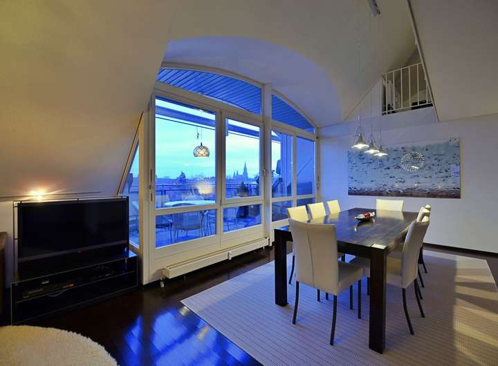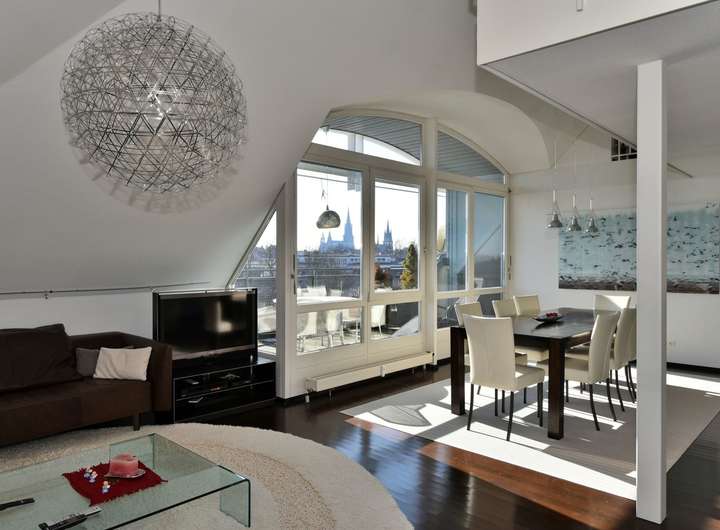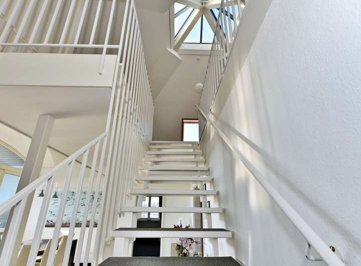welche Sie über eine innen liegende Treppe erreichen, ist sicherlich mit das Highlight dieser gepflegten Wohnung. Ein hoher Raum mit Lichteinfall über eine Glasspitze bietet Ihnen Platz zum Leben und Träumen. Vielleicht bietet sich dieser Bereich auch für Ihr ganz persönliches Hobby, für HomeOffice, für Gäste oder einfach als Rückzugsort an. Bestimmt gibt es so viele Möglichkeiten, wie Ideen.