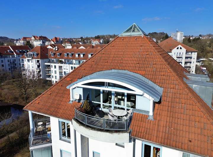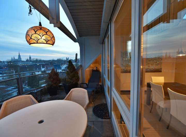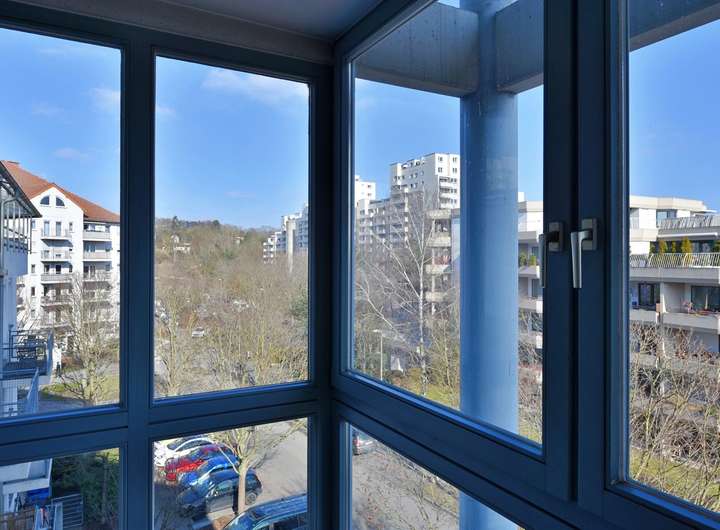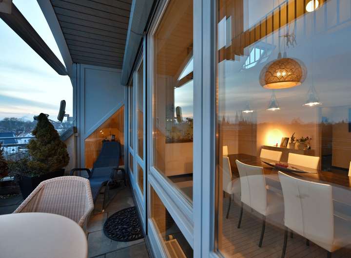 finden Sie zudem auf dem wunderschönen Balkon, welchen Sie über den Wohnbereich betreten. Ein unglaublich toller Weitblick bis zum Ulmer Münster, unverbaut und uneinsehbar, wartet hier auf Sie. Genießen Sie hier die frische Luft, den Frühling und Sommer bei einem Glas Wein, einem guten Buch oder mit Freunden.