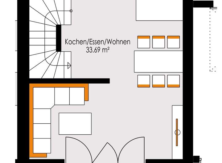 Die offene Küche und der Essbereich ergänzen den Wohnraum im Erdgeschoss und entsprechen den Anforderungen an modernes Wohnen.