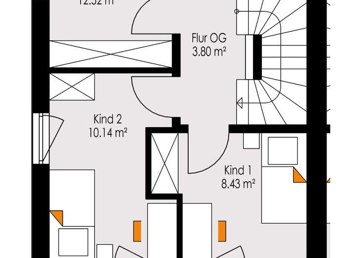 Im 1. Obergeschoss sind zum Elternschlafzimmer zwei Kinderzimmer und ein modernes Badezimmer mit Dusche und natürlich einem Fenster zur optimalen Belüftung.