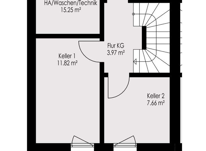 Im Kellergeschoss sind neben dem praktikablen Raum mit Waschen und Technik, zwei weitere Kellerräume vorhanden, als Vorratskeller und Hobbykeller perfekt zu nutzen.