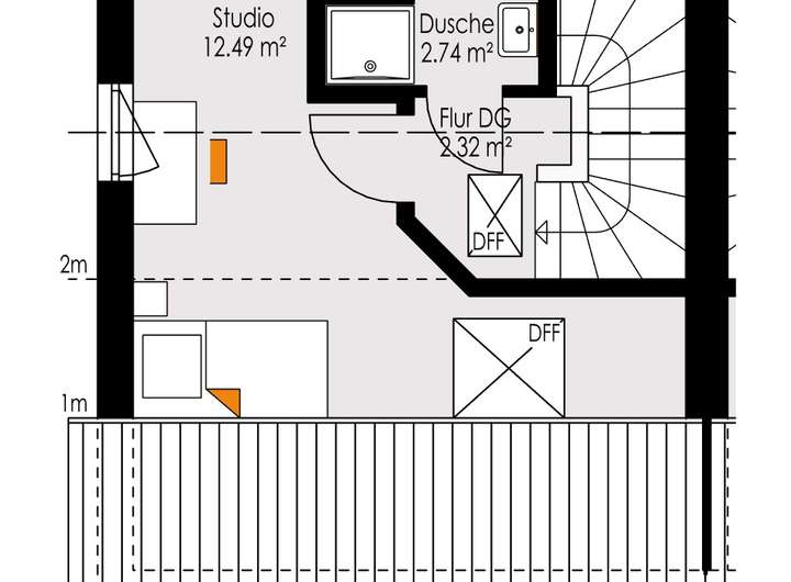 Eine tolle Erweiterung des Wohnens ist das ausgebaute Dachgeschoss. Das schöne Studiozimmer kann als Gästezimmer, Büro oder eigenes Reich für Familienmitglieder optimal genutzt werden. Nebenan ein kleines Duschbad, die perfekte Ergänzung.