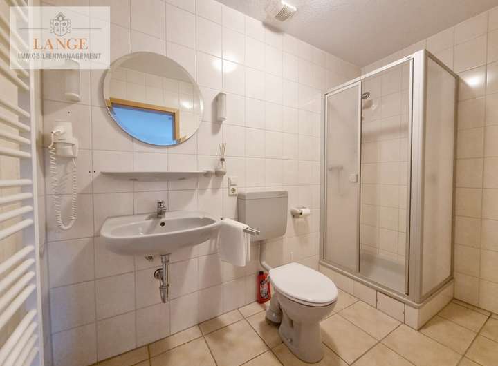 Idealerweise geeignet für Monteure oder Pendler da keine eigene Küche zum Zimmer gehört. Eine Nutzung einer vollausgestatteten Gemeinschaftsküche (Herd, Kühl- und Gefrierschrank, 2 Backöfen, Microwelle, Geschirrspüler, etc.) und separater Waschküche inkl. mehrerer Waschmaschinen und Trocknern kann auf Wunsch mit dazu gebucht werden.