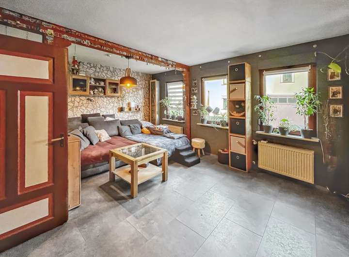 Das rechte Haus im Bild, ein charmantes Fachwerkhaus ca. aus dem Jahr 1900, bietet eine Wohnfläche von ca. 92 m² auf einem ca. 87 m² großen Grundstück. Über die Jahre wurden zahlreiche Renovierungsmaßnahmen durchgeführt. Das Dach wurde ca. 1975 erneuert, die Böden ungefähr 2002 modernisiert. Etwa im Jahr 1994 wurden sowohl die Wände gedämmt als auch die Fenster, Leitungen und Sanitärinstallationen erneuert. Der historische Gewölbekeller bietet zusätzlichen Stauraum und eignet sich hervorragend zur Lagerung, auch von Wein.