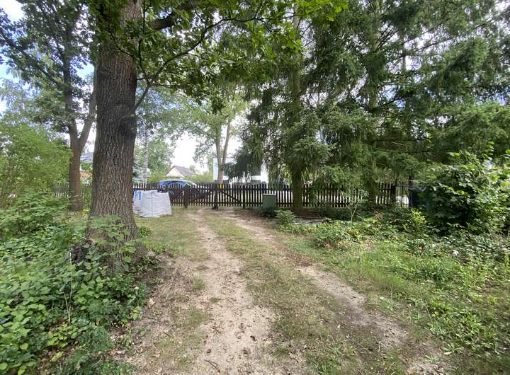 Der Zuschnitt des Grundstückes ist leicht unregelmäßig, unsymmetrisch und trapezförmiger Gestalt. Die Straßenfront beträgt ca. 19,7 und die mittlere Tiefe senkrecht zur Straßenfront gemessen ca. 67,5 Metern. Das Grundstück wurde bis 31.12.2024 zu Wochenend- und Erholungszwecken genutzt, die vorhandenen Altbauten wurden vom ehemaligen Pächter entfernt. Das Grundstück ist mit Strom und Wasser (Altanschlüsse) erschlossen. Gasanschluss liegt straßenseitig an.