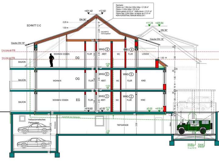 Es liegt eine Baugenehmigung zum Neubau von 9 Wohnungen und 9 Tiefgaragenplätzen vor.