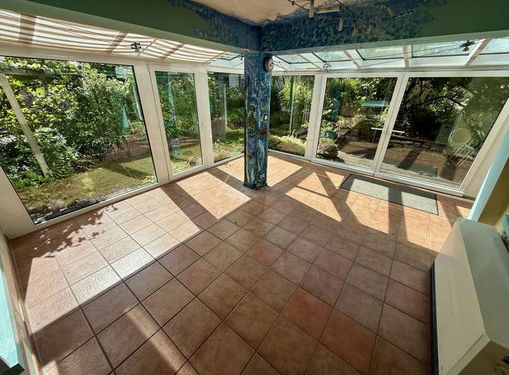 • Schöner ca. 28 m² große Wintergarten, der in eine offen gestaltete Küche übergeht (inklusive).