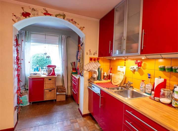 • Bodenbeläge: Echtholzparkett im Wohnzimmer und Kinderzimmer, Teppich in den übrigen Räumen, PVC in der Küche, Fliesen im Bad und Wintergarten