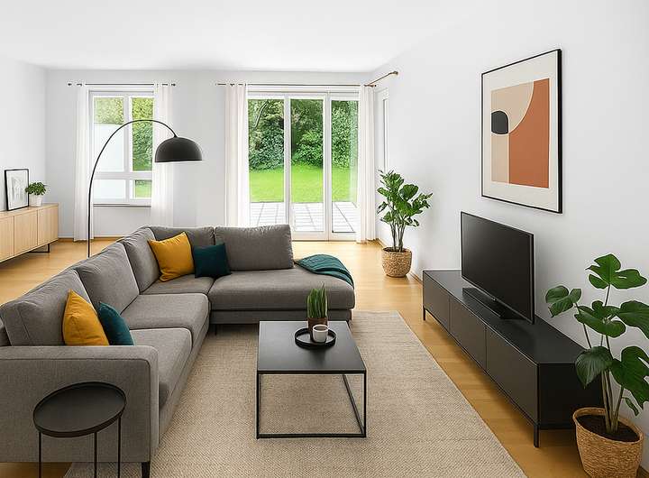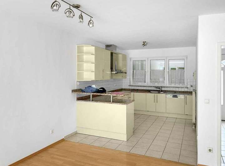 Der großzügige Wohnbereich schafft eine einladende Atmosphäre und bietet ideale Voraussetzungen für gemütliche Stunden mit der Familie. Die Einbauküche erfüllt alle Anforderungen an eine funktionale und zeitgemäße Ausstattung.