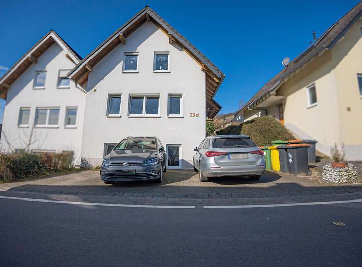 Die Maisonettewohnung Nr. 1 erstreckt sich über zwei Etagen und umfasst das Erd- und Kellergeschoss. Das Erdgeschoss umfasst einen Eingangsbereich, ein Duschbad/WC, eine großzügige Wohnküche, ein Wohnzimmer mit Austritt zur schönen Westterrasse sowie ein Schlafzimmer. Das Kellergeschoss umfasst drei Schlafzimmer sowie ein Wannenbad/WC mit Waschmaschinenanschluss. Zudem gehören ein Kellerraum und zwei PKW-Außenstellplätze zur Wohnung, die bereits im Kaufpreis enthalten sind.