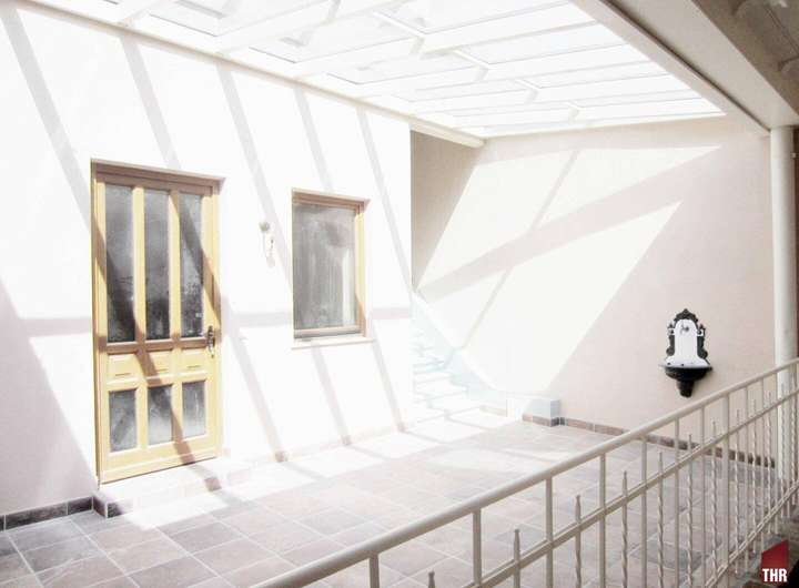 Über ein paar Stufen gelangen Sie in den 32m2 Atriumbereich , welcher mit Thermoisolierglas gedeckt ist und von welchen Sie zentral alle weiteren Räume betreten.